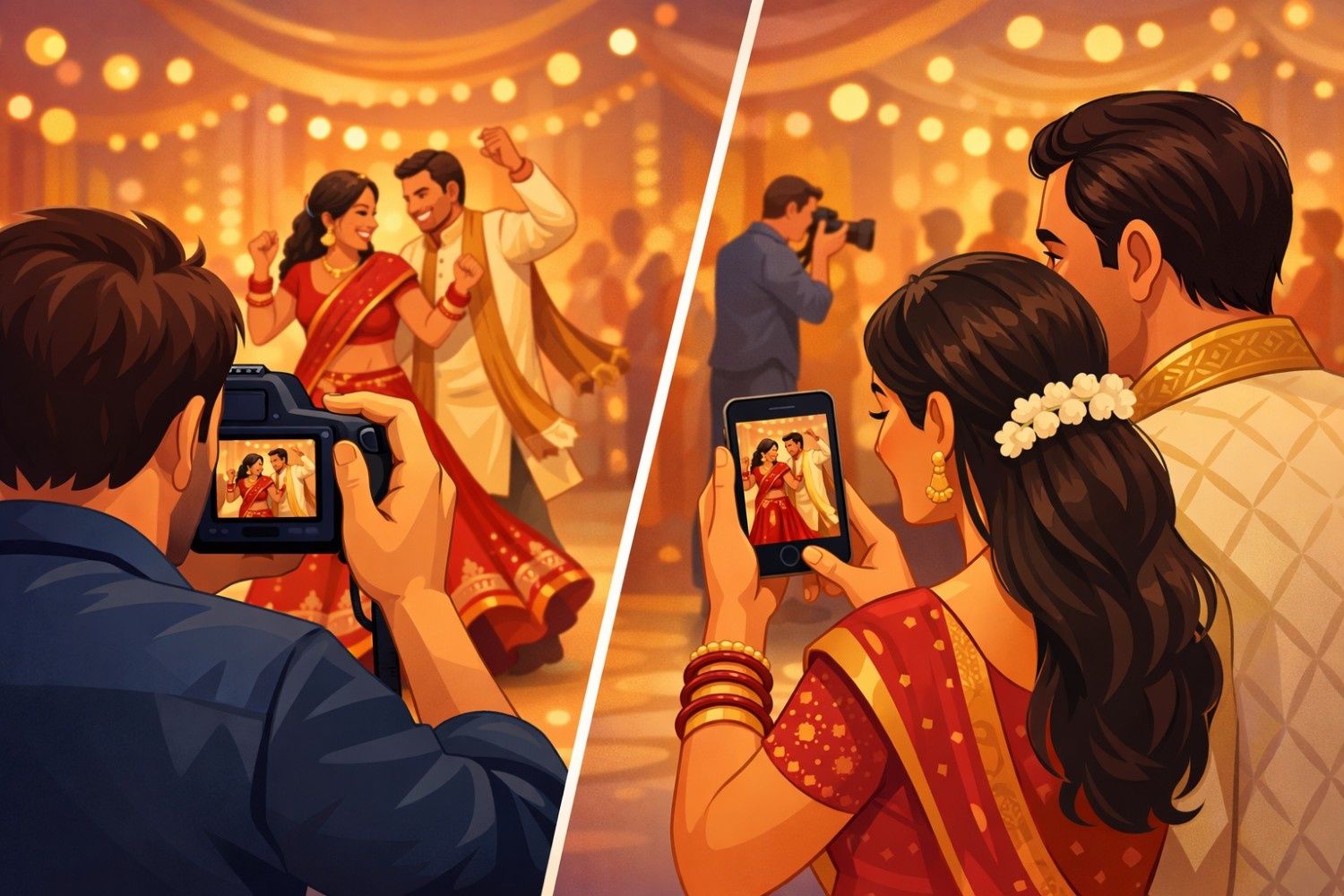 And because sharing happens while the wedding is still trending in conversations, the photographer gets tagged more—creating organic marketing without spending a rupee.